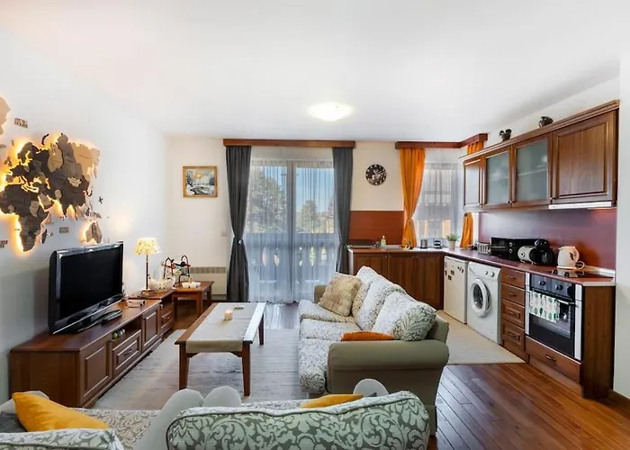تقع Apartment In Pirin Golf And Country Club بمساحة 60 مترًا مربعًا في مدينة بانسكو، على مسافة 2.4 كم من نادي Pirin Golf and Country، وتوفّر مرافق سبا مثل غرفة بخار وساونا والمسبح الداخلي. يمكن للضيوف الإقامة في الشقة مع إطلالات على الجبل وبركة السباحة الداخلية والحديقة في الموقع.